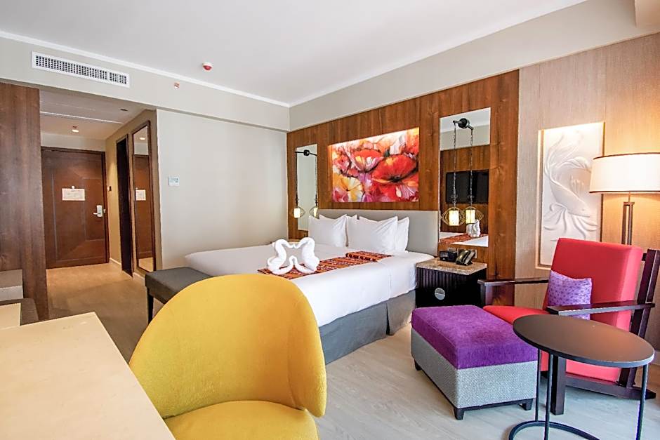 Guest rooms come equipped with air conditioning, free toiletries, a bidet, a bathtub, and a balcony offering a view, with upper floors reachable by elevator. Shuttle service is available for an extra charge, ensuring easy trips to nearby sights while soaking in island vibes.